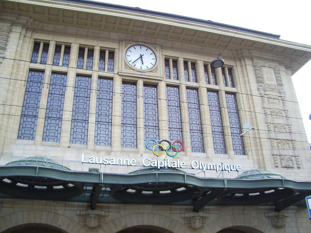 Jynus, Façade of the "Gare" (Train Station) of Lausanne (Switzerland), GNU/FDL, CC 3.0 BY-SA.